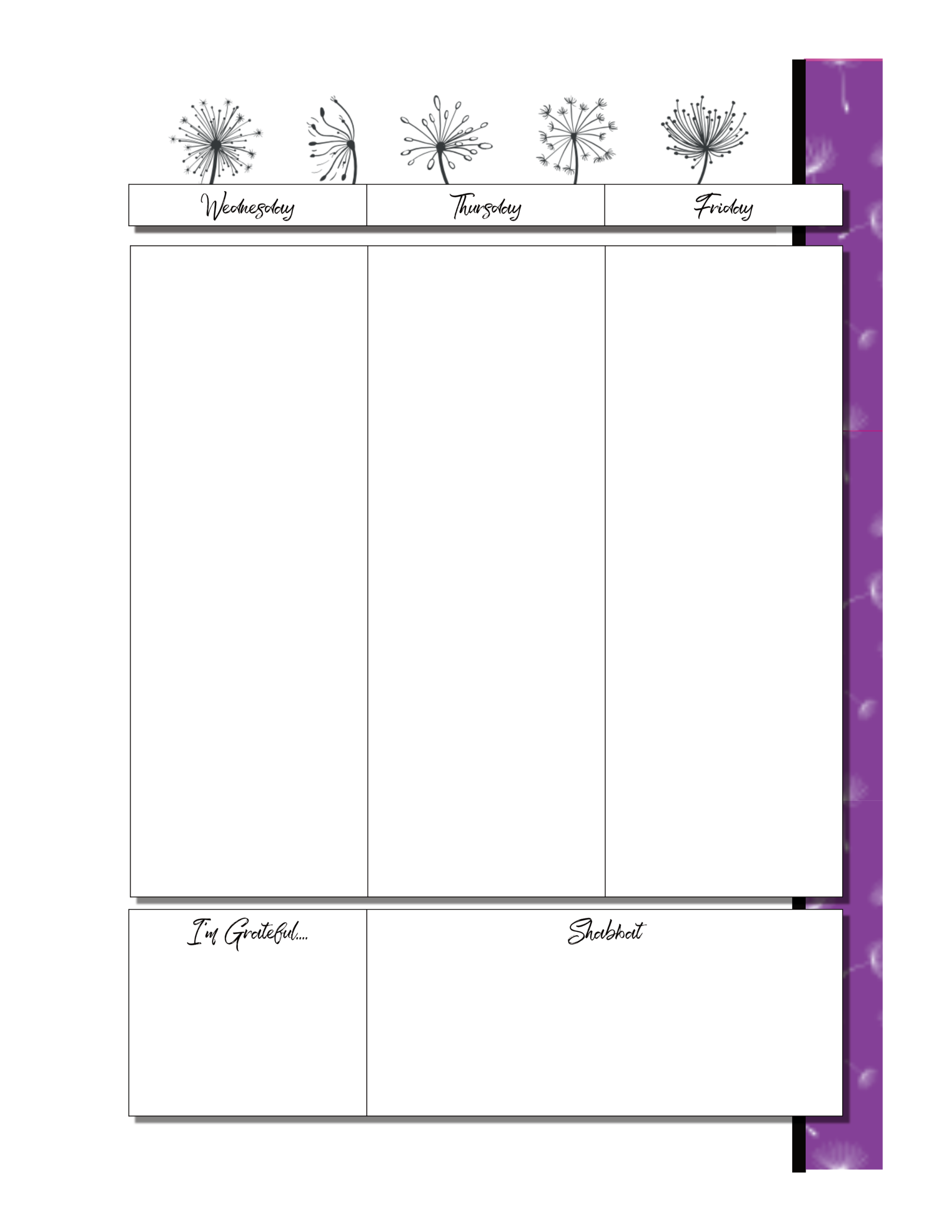 This weekly layout is a two page spread, with vertical columns for each day.